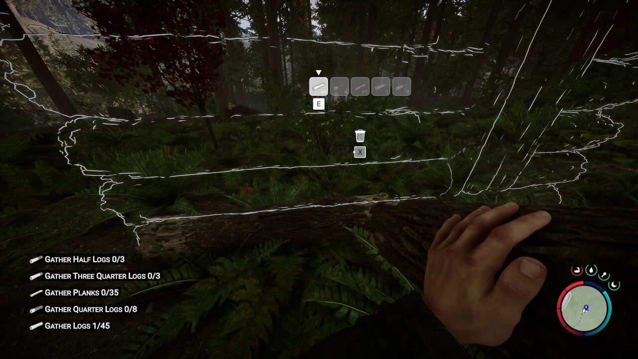 통나무 및 막대기와 같은 항목에는 땅을 보면서 마우스 오른쪽 버튼을 눌러 전환할 수 있는 여러 옵션이 있습니다. 통나무의 경우 이렇게 하면 수직으로 놓을 수 있고 막대기는 부러지거나 땅에 박힐 수 있습니다.