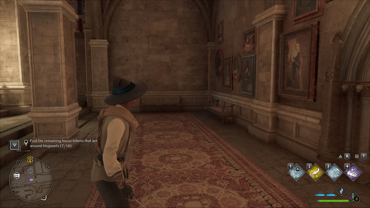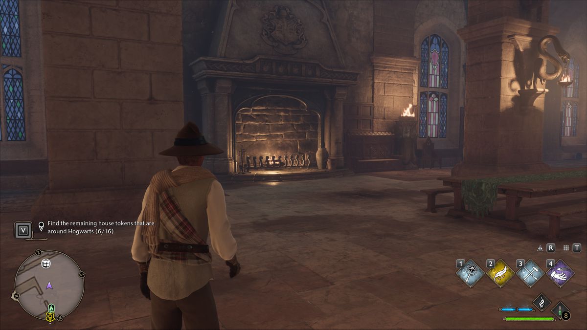 첫 번째 열쇠를 얻으려면 Defence Against the Dark Arts 교실에서 메인 로비로 내려가십시오. 열쇠는 거대한 해골 주위를 날고 있습니다.