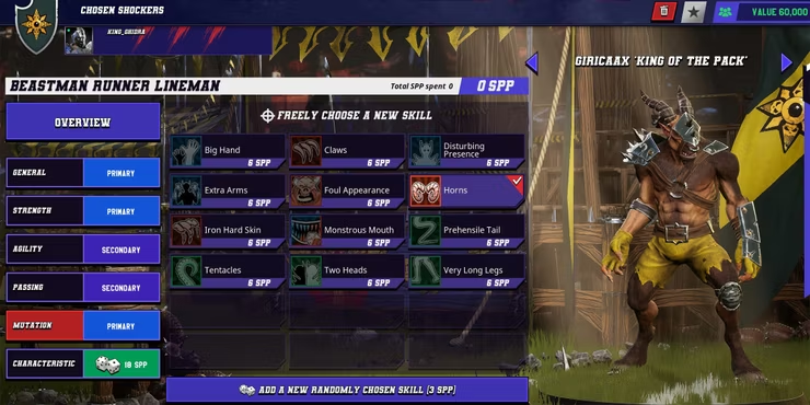 Blood Bowl 3 Chaos Chosen 시작 빌드