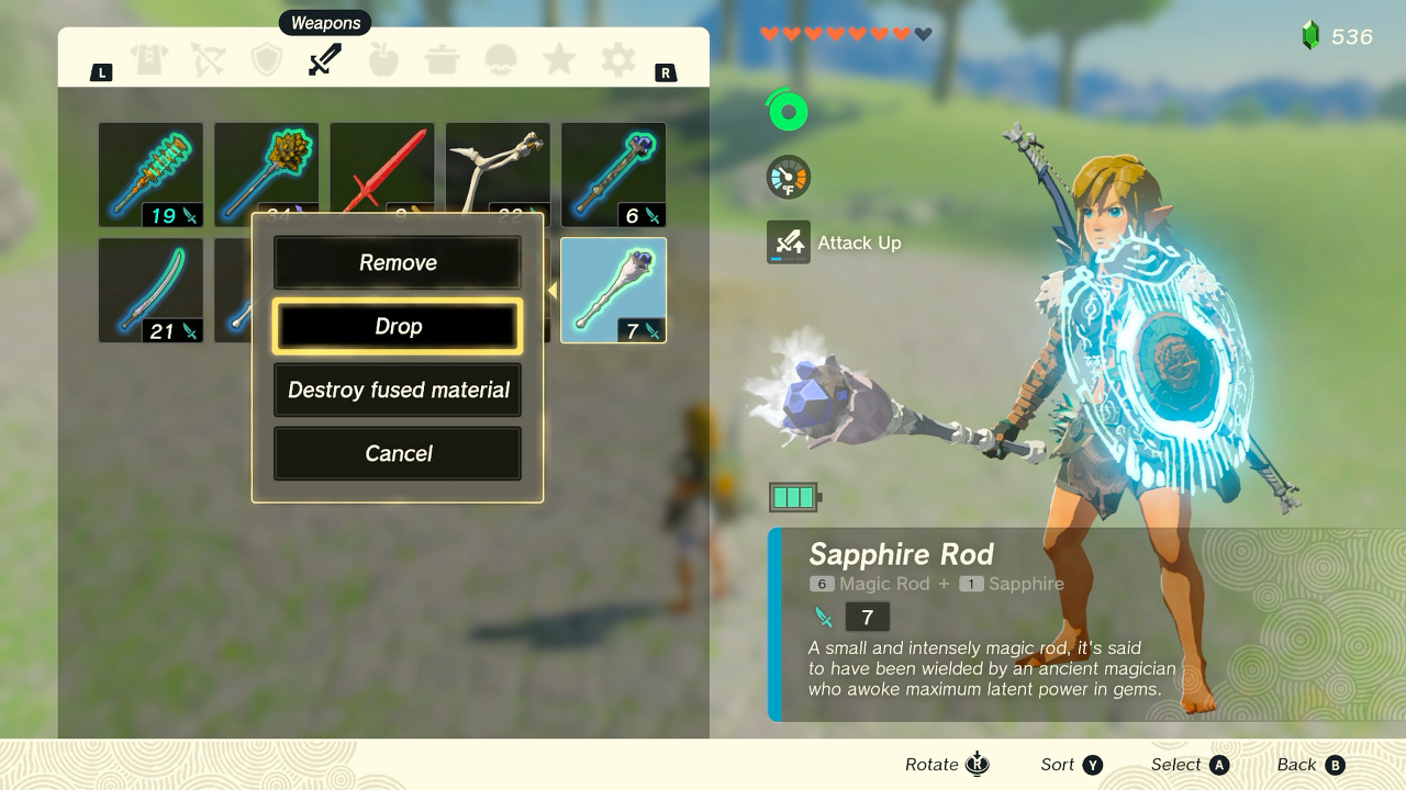 - +를 최대한 빠르게 두 번 누릅니다. 목표는 떨어진 무기나 방패가 땅에 떨어지기 전에 메뉴를 떠났다가 다시 들어가는 것이므로 매우 빨라야 합니다! Joy-Con보다 Pro Controller에서 더 쉬울 수 있습니다.