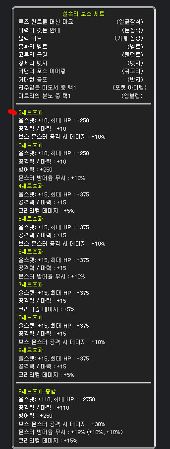 메이플스토리 칠흑의 보스 세트 효과 안내