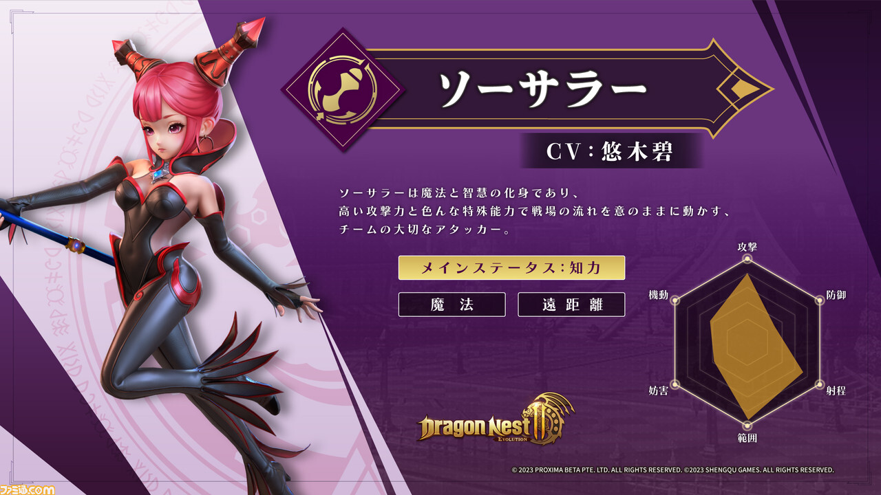 소서러는 광범위하고 위력이 높은 공격을 할 수있는 공격자입니다. 마법을 사용하여 공격하고 싶은 분에게 추천. 근거리 전투는 약하기 때문에 적과 거리를 취하면서 싸우는 것을 유의합시다.