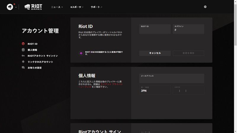 RIOT ID는 웹상의 'RIOT 계정 관리'에서 변경할 수 있습니다만, 작성/변경하고 나서 30일간은 변경할 수 없다고 하는 제한이 마련되어 있으므로, 오타/입력 실수나 다른 유저로부터 반감을 사는 ID로의 변경에는 충분히 주의 합시다 .