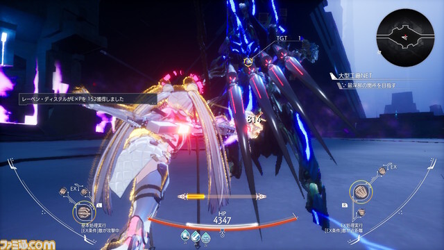 액션은 버튼을 누르는 것만으로 콤보가 연결되는, 경쾌하고 기분 좋은 시스템. 저스트 회피나 카운터 등, 한층 더 상쾌감을 느낄 수 있는 액션도 있다. 게다가 에노아에 의한 전투 지원 프로그램이나 현속기를 섞은 콤보 등 전투 중에 할 수 있는 것의 폭은 넓다. 손쉽게 놀아도 좋고, 자신의 액션 한계를 파악해도 좋다. 액션 게임 초보자부터 상급자까지, 어느 층이라도 자신에게 있던 놀이 방법이 생긴다.