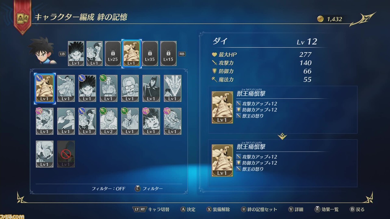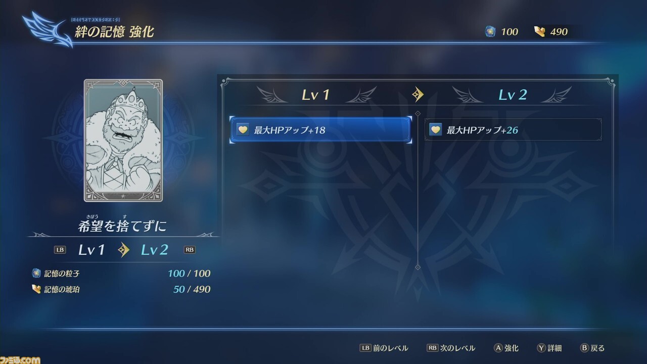 보통의 액션 RPG라면 장비품을 바꾸는 것으로 강화할 수 있지만, 원작에 충실한 것을 소중히 하고 있는 본작에서는, 장비품을 바꾼다고 하는 요소는 배. 장비품 대신 각 캐릭터를 강화해주는 게 “정의 기억”이라는 아이템이 된다.