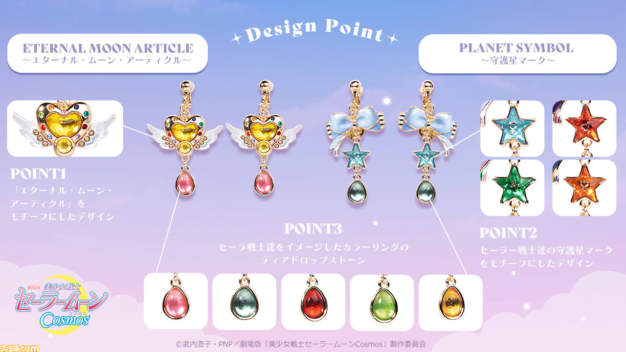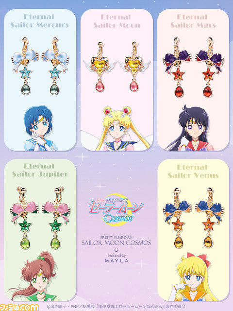 세일러문 굿즈 "세일러 문 Cosmos"세일러 전사가 우아한 귀걸이와 귀걸이에. 똑같이 지구에 태어난 브랜드 “마이라”와 콜라보