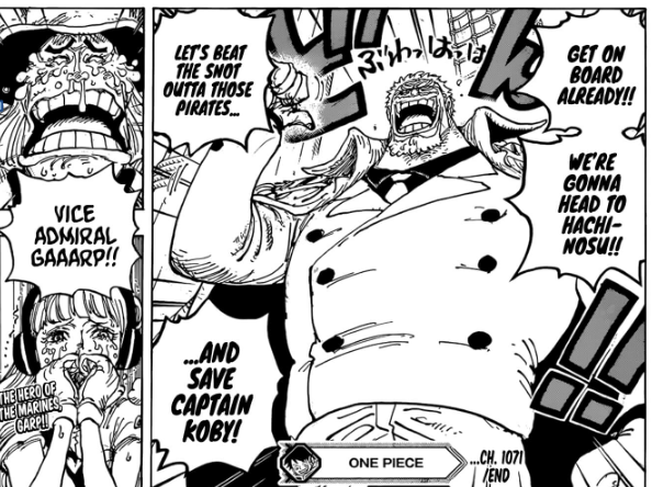 실제로 그의 가장 큰 관심사는 며칠 전 Blackbeard에게 납치된 그의 학생 Coby였습니다. 1071장에 나오는 장면에서 Garp는 Luffy의 운명에 대해 어떤 종류의 불안도 나타내지 않습니다. 그러나 그의 지위와 중요성을 감안할 때 그는 방금 전 해군에 맡겨진 임무와 인근 섬에 조카가 있다는 사실을 알고 있어야 합니다.