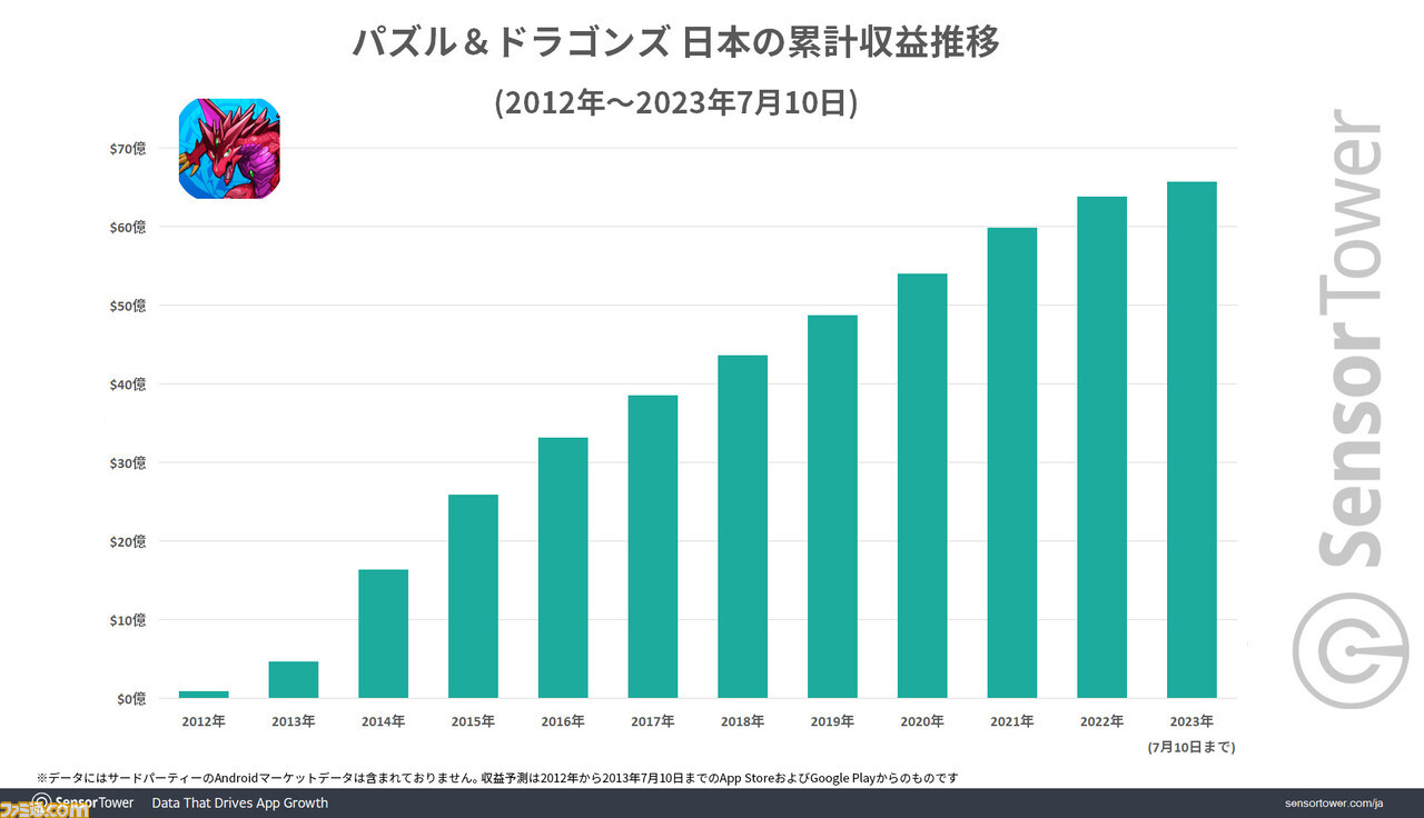 '퍼즐 & 드래곤즈'에서는 일본 출시부터 'SPY×FAMILY' 콜라보레이션 종료 시(2023년 7월 10일)까지의 누계 수익은 65억 달러를 돌파했습니다. 이 콜라보레이션에서 "로이드 & 아냐 & 요르"나 "아냐 & 본드"등을 라인업한 콜라보레이션 가챠를 전개하여 이것이 수익에 공헌했다고 추측할 수 있습니다.