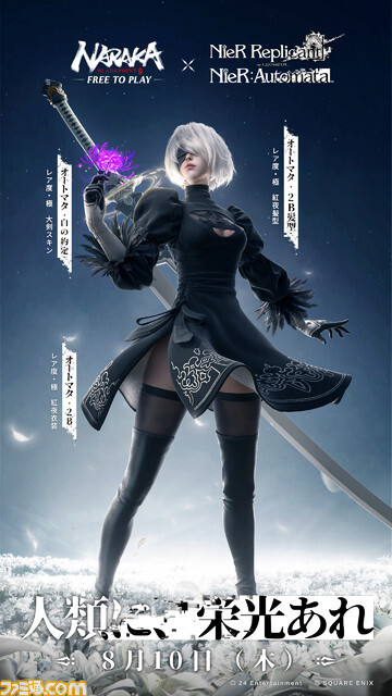 그런 'NARAKA'는 8월 들어 더 큰 시책이 전개된다. 그래, 기보대로 스퀘어 에닉스의 「NiR:Automata」, 「NiR Replicant」라고 콜라보하는 것이다.