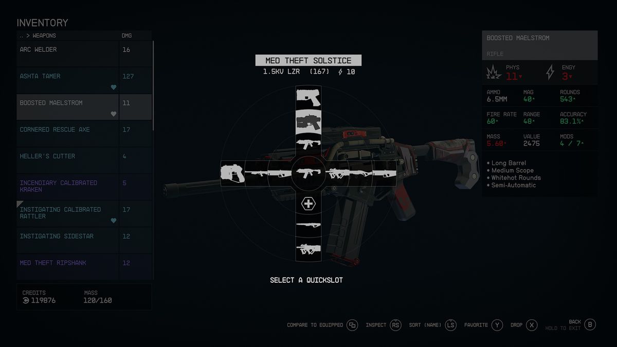 운 좋게도 모든 탄약의 질량은 0 이므로 눈에 보이는 모든 탄약을 약탈하는 것만으로는 인벤토리를 가득 채울 수 없습니다 . 마찬가지로 의료용 팩과 디지픽 ("자물쇠 픽"의 Starfield )은 무게가 전혀 나지 않습니다. 이 모든 것을 포기할 수 있습니다.