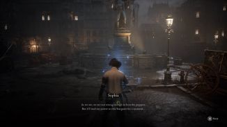 메인 대로에 들어서면 검은 토끼 형제단(The Black Rabbit Brotherhood)이 나타나며 한 회원이 위의 철도 차량에서 멀어집니다. 계속 전진하여 거리 끝에서 Stargazer를 활성화한 다음 상호 작용하여 Gemini와 대화하여 선택적인 대화를 할 수 있습니다.
