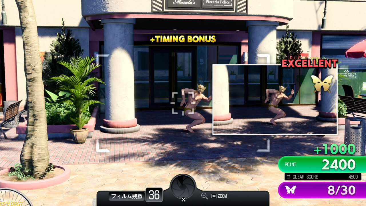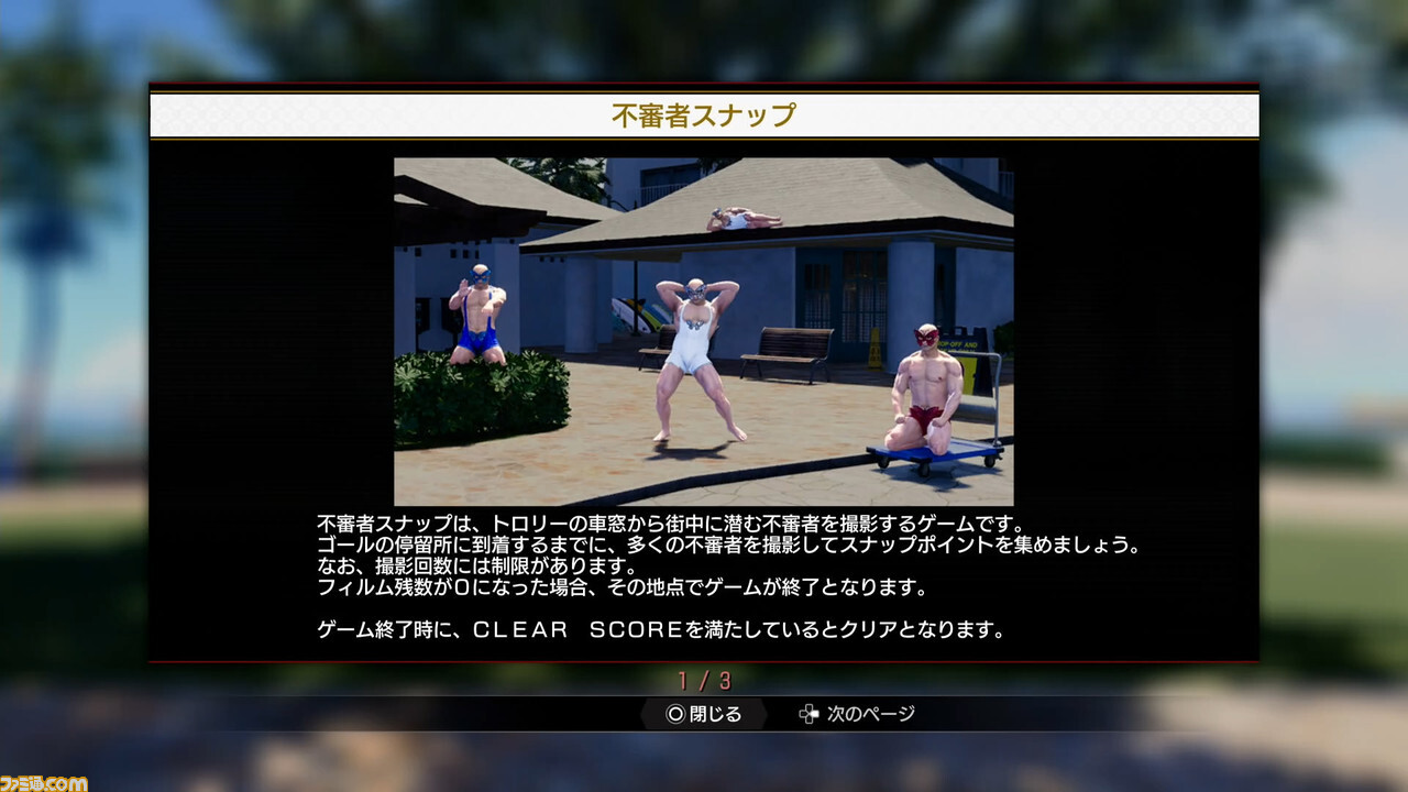 트롤리를 타면 놀 수있는 것이 "수상한 사람 스냅"이라는 미니 게임. 자동으로 진행되는 트롤리를 타면서 카메라를 짓고, 거리에 있는 수상한 사람을 찾아 그들의 사진을 촬영해 나간다는 (칭찬으로서 굳이 사용하지만) 최고로 어리석은 놀이다. 그리고, 여러가지 게임을 놀아온 사람으로부터 하면, 그 이름으로부터 어쩐지 어떤 미니 게임인지 알아볼 수 있는 점도 훌륭하다.
