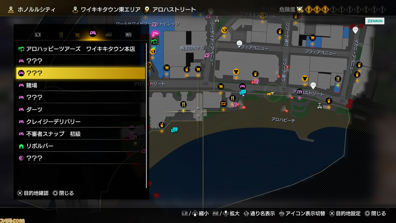 배틀을 마친 후는, 주변을 걸어 하와이의 거리를 즐길 수 있게 되지만, 20분이라는 시유 시간에 맞추어 크게 4개의 체험 코스가 제시되는 형태가 된다(물론, 그 안내를 무시하고 거리 산책을 즐길 수 있습니다). 추천되는 각 코스의 볼거리를 하나하나 해설하자.