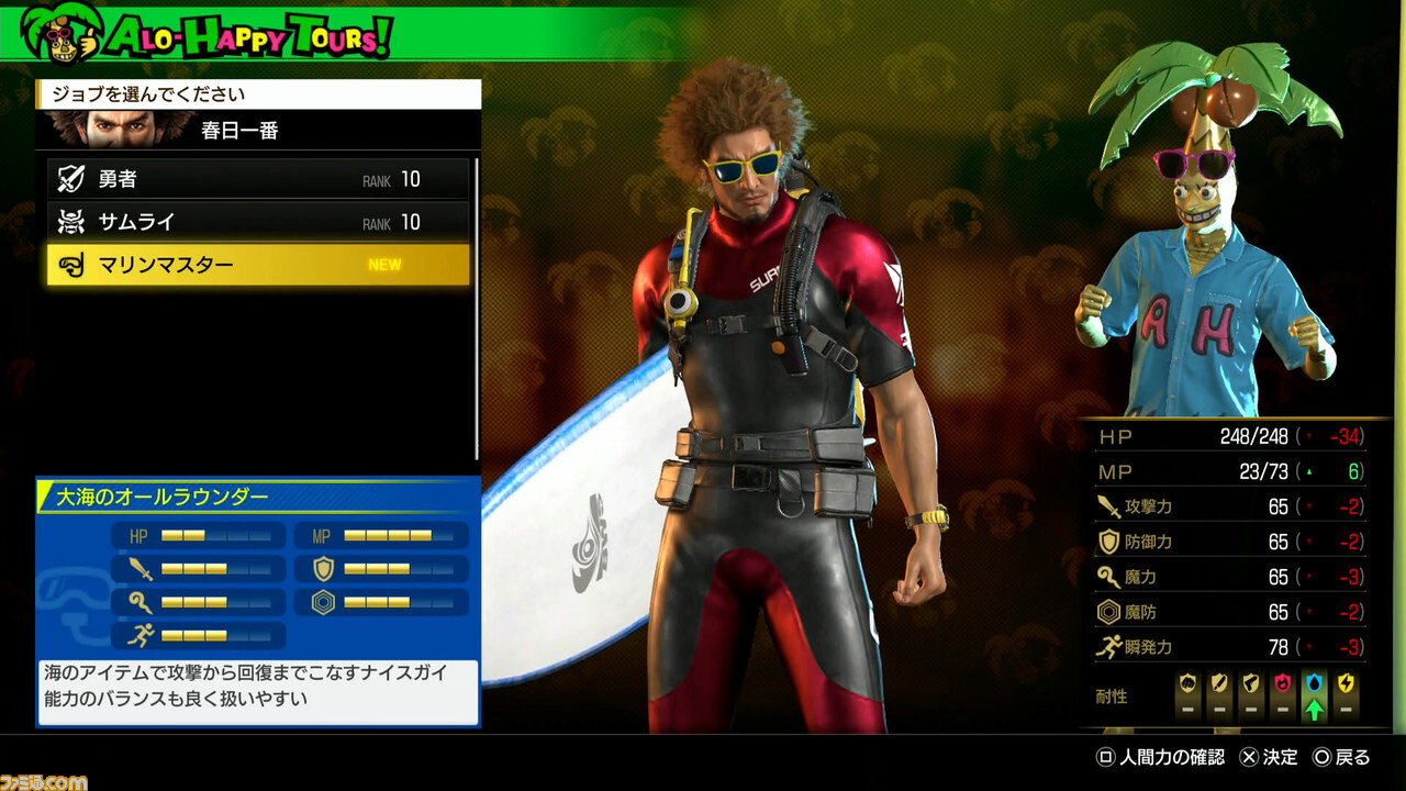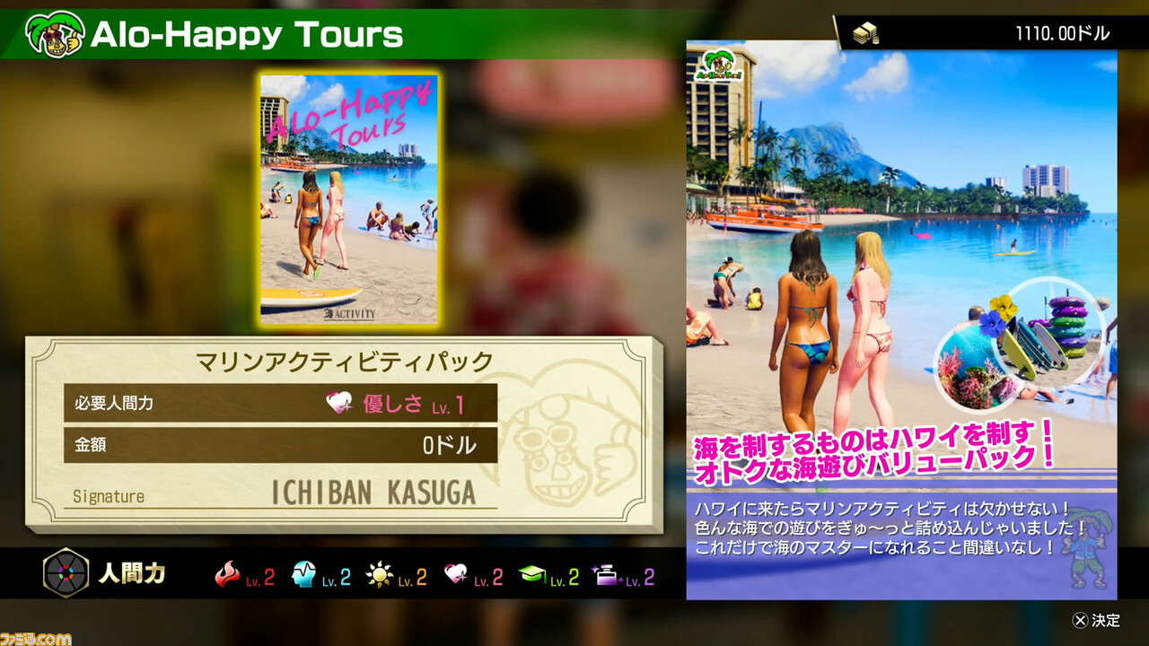 조건을 충족하고 나서 여행사에서 신청하면 하와이만의 액티비티를 만끽할 수 있다. 이것도 본작의 모험에서는 매우 중요한 요소로, 액티비티를 만끽한 후에는 카스가가 새로운 직업을 번쩍!