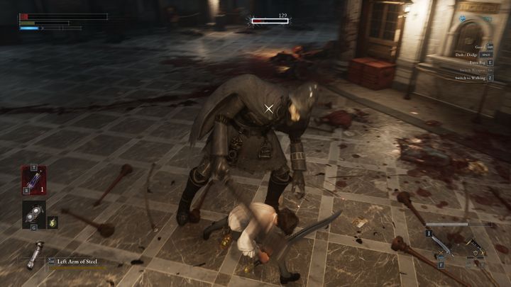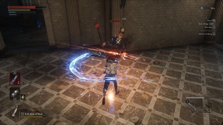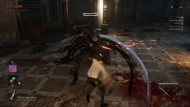 차단하는 경우 가드를 유지하거나 완벽한 차단을 수행하는 두 가지 옵션 이 있습니다 . 첫 번째 옵션의 경우 받는 피해가 감소하고(완전히 완화되지는 않음) 무기의 내구도가 떨어지지만 이런 방식으로 체력을 어느 정도 회복할 수 있습니다. 반면에 완벽한 블록을 사용하면 상대방의 균형을 무너뜨리거나 심지어 무기를 파괴할 수도 있습니다. 여기서는 타이밍이 중요합니다. 완벽한 차단을 마스터했다면 최대한 자주 사용하세요.
