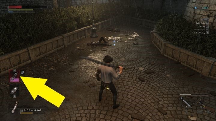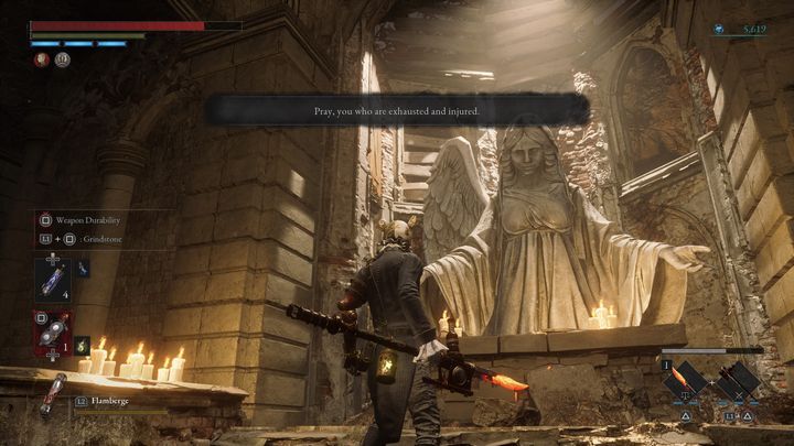 이 아이템은 Giangio 라는 NPC와 대화하면 얻을 수 있습니다 . 그는 외날개 천사 동상 에서 멀지 않은 곳에 위치해 있으며 , 불행의 길에 있는 성 프란젤리코 대성당 예배당으로 이어지는 다리 근처에 있습니다. 천사 앞에서 우회전한 후 계단을 내려갑니다.