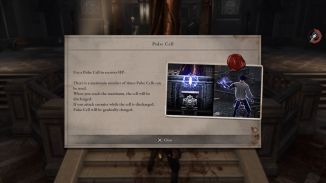 두 명의 기차역 작업자를 처리한 후 역 입구 오른쪽에 있는 톱니바퀴를 수집한 다음 안으로 들어가서 조각상 바닥에 있는 빛나는 원통과 상호 작용하여 펄스 셀을 복구하세요 . Dark Souls 의 Estus 플라스크와 유사하게 펄스 셀은 Stargazer에서 휴식을 취하면 재충전되고 빠른 메뉴를 통해 HP를 복원하는 데 사용할 수 있는 일정 횟수의 충전이 포함된 영구 아이템입니다.