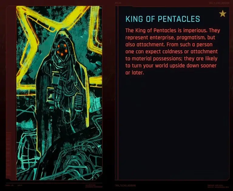 엘리베이터에서 나온 직후와 아파트에 들어가기 전(또는 이 미션 이후 어느 시점에서든) 아파트 입구 건너편 오른쪽 벽에 있는 벽화를 스캔할 수 있습니다. 그러면 Dogtown의 첫 번째 타로 카드인 King of Pentacles가 제공됩니다.