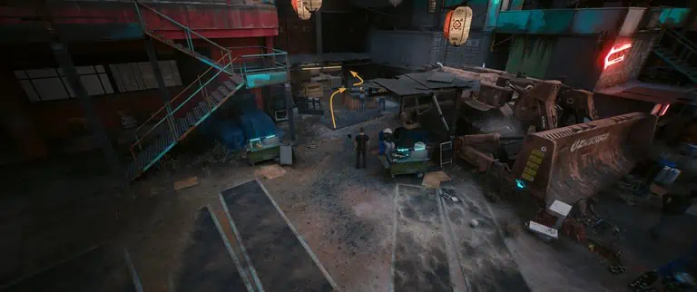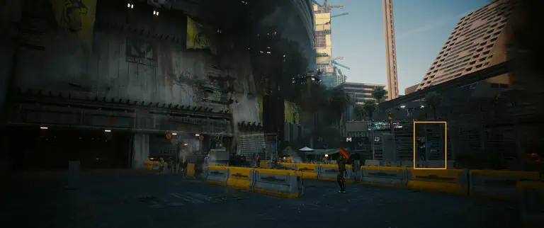 독타운 정문을 정면으로 바라보면 금속 울타리 벽 오른쪽에 카드가 있습니다. 처음으로 Songbird를 만나 대화해야 하는 Phantom Liberty의 소개 임무를 위해 말 그대로 통과합니다.