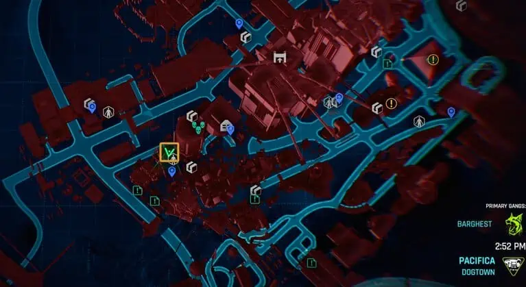 타로 카드 아이콘으로 표시됩니다. 마커가 보이지 않으면 Night City 지도에서 필터를 전환하거나 특정 위치에 더 가까이 가야 할 수도 있습니다.