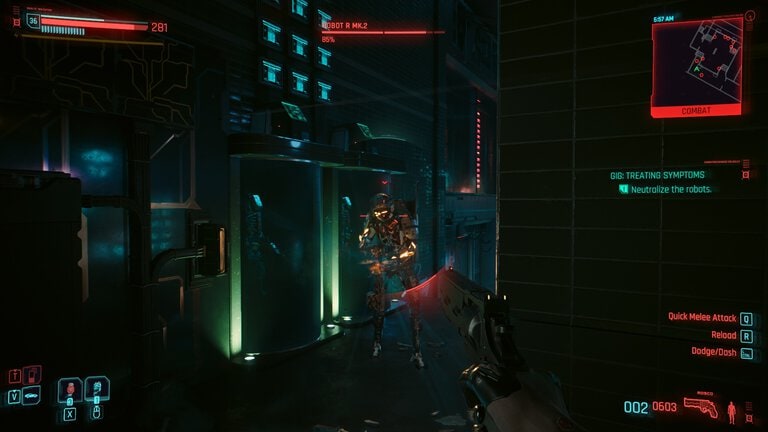모든 로봇은 대기 모드에 있지만, 몇 걸음만 걸으면 서버실 중앙(가장 강한 보스 NPC)에 위치한 로봇이 활성화된다. 1분 정도 지나면 약한 것들도 활성화되어 여러 측면에서 당신을 공격할 것입니다.