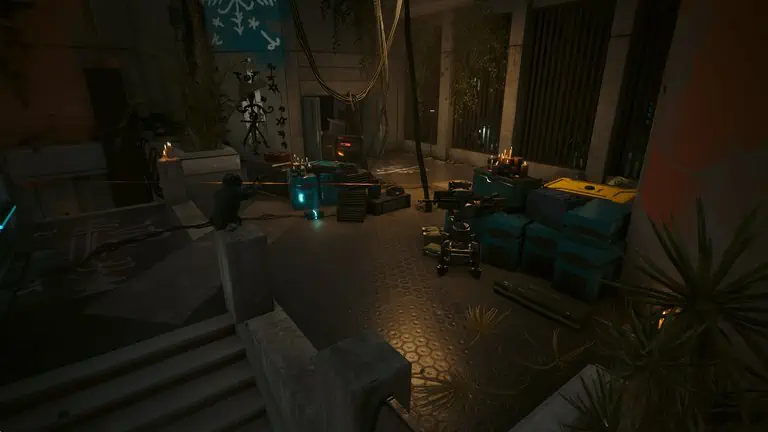 건물은 여러 구역으로 나누어져 있으니, 반드시 가장 왼쪽에 있는 구역으로 들어가세요. 입구는 2개가 있는데, 주요 입구는 건물 전면에 있으며, 여러 부두 소년(Voodoo Boys)과 포탑이 지키고 있습니다. 보조 입구는 왼쪽에 있으며, 그것을 지키고 있는 사람은 두 명뿐입니다.