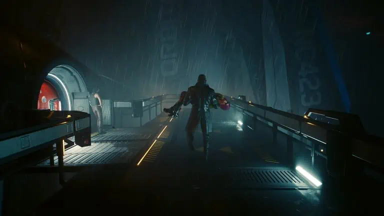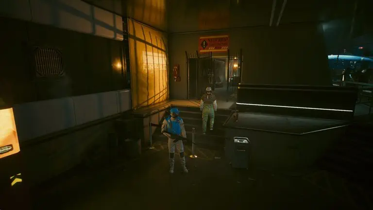 무기는 밴에 있어야 하며, 우주공항 보안팀이 사이버웨어를 일시적으로 차단합니다. Songbird는 필요한 모든 지침을 제공하므로 사용자가 해야 할 일은 관심을 끌지 않는 것뿐입니다. 너무 뻔하거나 멍청하게 들릴 수도 있지만 그냥 "정상적으로 행동하세요".