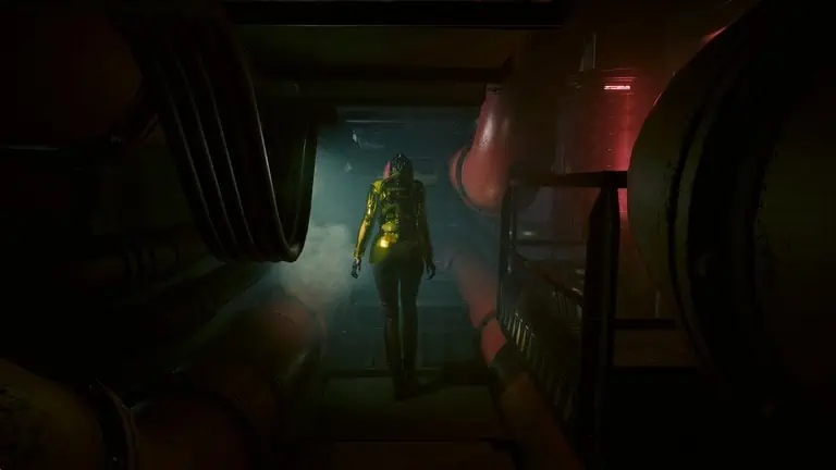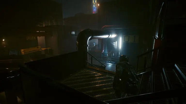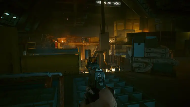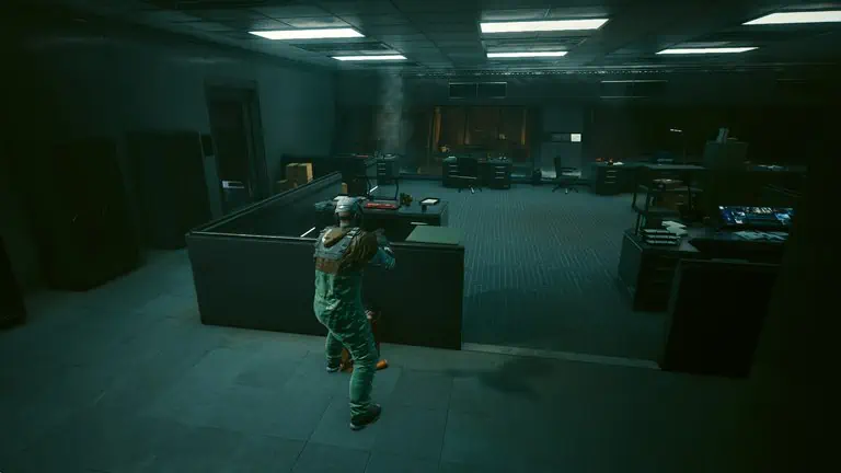 이 홀은 매우 어둡습니다. 제가 달려갔고 무기가 "실발"했기 때문에 모퉁이를 돌고 있는 경비원이 저를 놀라게 했습니다. Corpo 복장을 착용하고 있다면 계속해서 걷기만 하면 됩니다.
