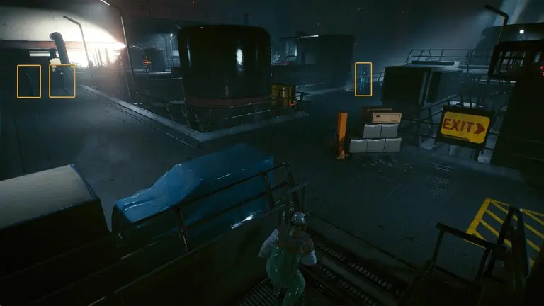 그들의 대화를 듣고 송버드가 앞장서고 있습니다. 덕트에서 나오기까지는 그리 많은 시간이 걸리지 않을 것입니다. 빛이 부족하여 쉽게 발견되지 않는 지역에 경비원이 있으므로 조심하세요. 그들을 피하려면 웅크리고 “Exit” 표시가 가리키는 방향으로 돌아서세요.