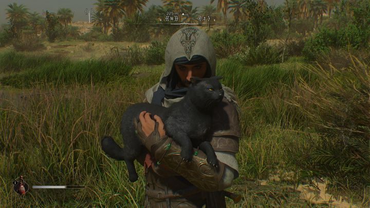 Basim은 동물을 안고 다정하게 쓰다듬을 것입니다 . 이 짧은 장면이 끝나면 새끼 고양이는 땅바닥에 내려놓게 됩니다. 불행하게도, 한번 쓰다듬어주면 고양이는 더 쓰다듬고 싶은 기분이 들지 않을 것입니다.