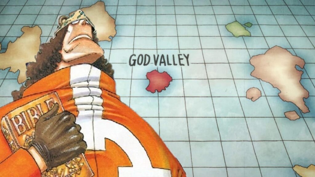 - 38년 전의 사건에 관한 것으로 추정되는 Godvalley 플래시백이 있습니다. 여기서 우리는 다양한 부족의 운명이 결정되는 천상의 용들이 조직한 토너먼트를 봅니다. 실제로 토너먼트는 원피스 세계의 다양한 인종 그룹 간의 충돌을 보여줍니다 .
