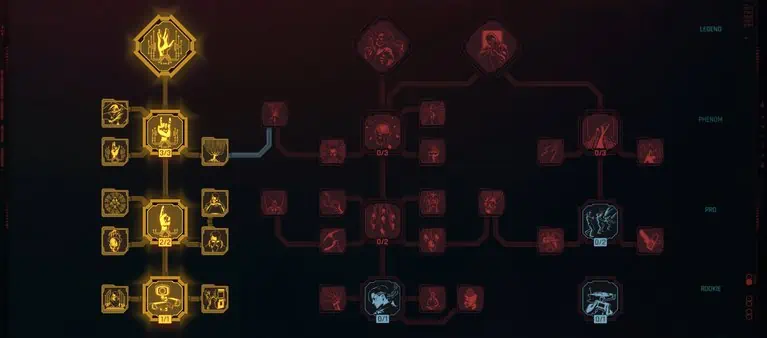Legend Perk(지능 20)는 스마트 무기에 즉각적인 잠금 기능과 25% 데미지 증가를 제공하려면 오버클럭을 활성화해야 하기 때문에 순수 Netrunner만을 위한 것입니다. 그 시점에서 Intelligence에서 트리 2개를 채웠고, 세 번째는 Quickhack Queueing용인데 왜 해당 브랜치에 전액 투자하여 트리 전체를 채우지 않겠습니까?