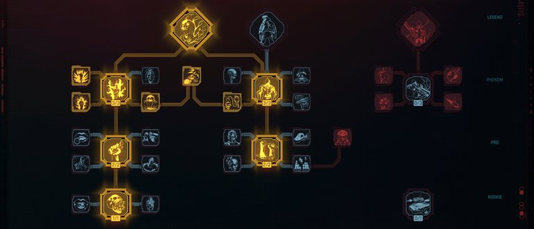 Doomslayer와 Ticking Time Bomb의 2가지 특전이 있으며 이를 위해서는 Cyberware 업그레이드에 초점을 맞춘 중간 지점과 왼쪽 지점 모두에 상당히 많은 투자를 해야 합니다. 그러나 두 특전 모두 폭발물 지향적이므로 좌파 계열에 더 가깝다고 생각합니다.