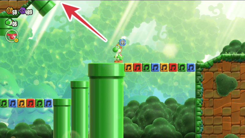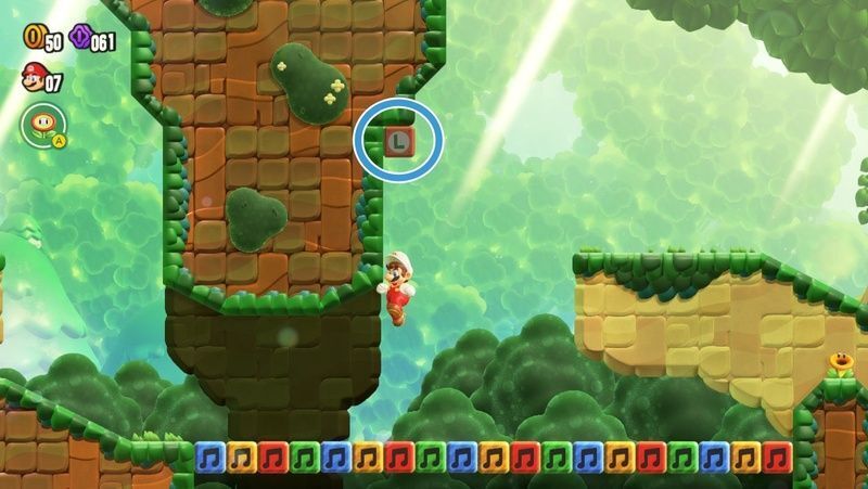 두 번째 10 꽃 동전이있는 근처의 숨겨진 블록을 두드리면 1UP 버섯이 출현합니다.